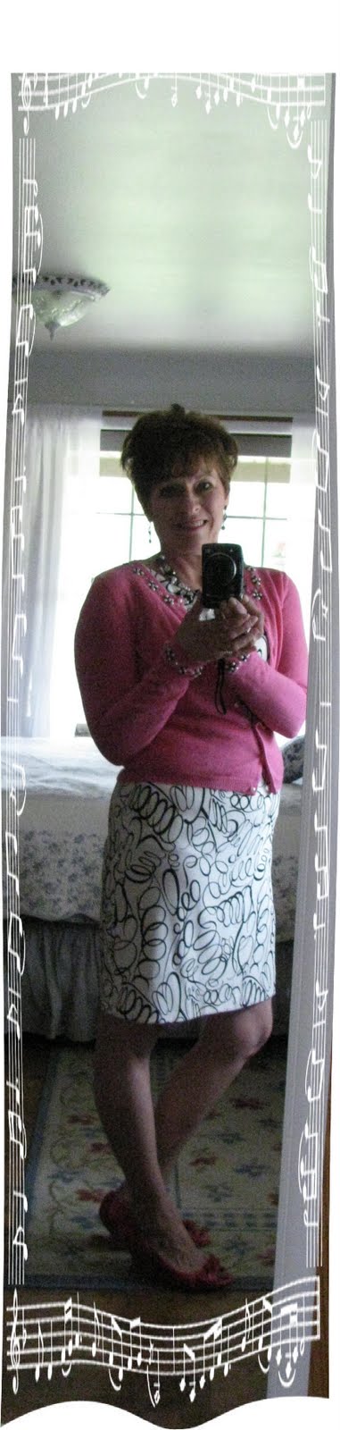 ReplyDeleteYou look so stylish reflected in the mirror like that and the music notes frame you beautifully too.