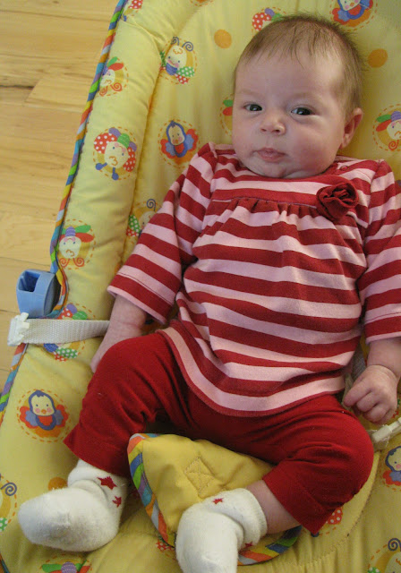 She was weighed and measured at the Dr. today. She has grown a whopping 3 inches and gained 3 lbs. in just one month!